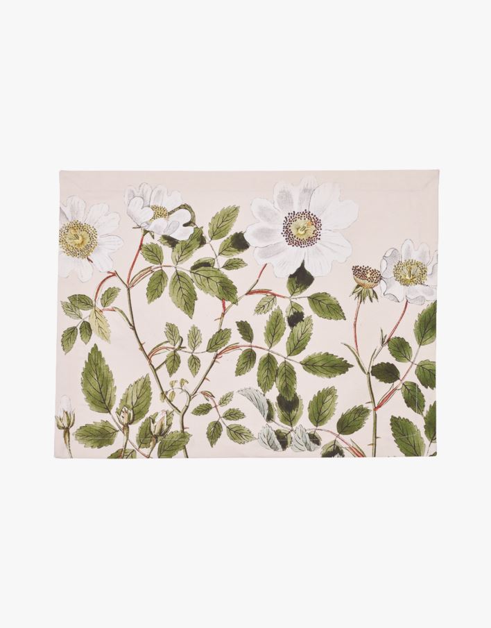 Bordstablett med beige botten och blommönster av BCI-bomull.