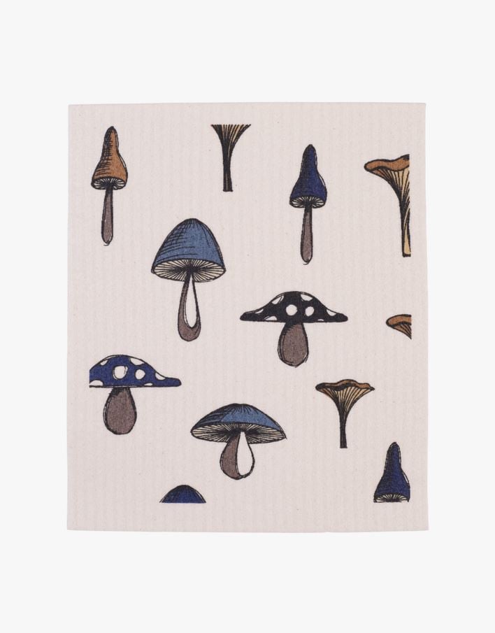 Disktrasa av återvunnet material med motiv av svampar. Bra kökstrasa som absorberar upp till 15 gånger sin egen vikt. Kan tvättas i tvättmaskin och återanvändas.
