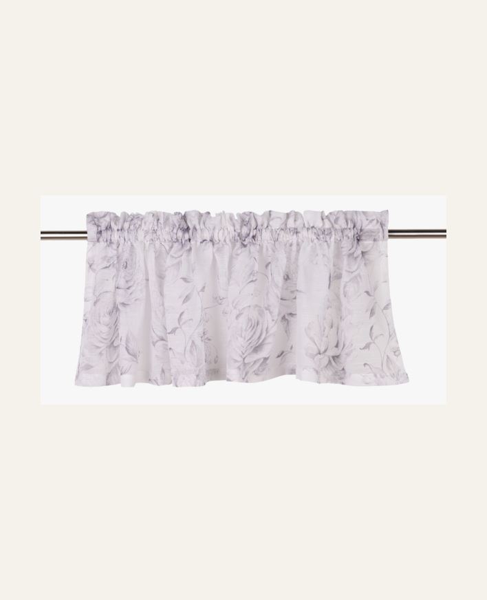 Gardinkappa med romantiskt mönster i en neutral färgskala. En kappa med mönster av rosor i en färgskala som går ton i ton. Klassisk gardinkappa som ramar in fönstret utan att skärma av ljuset. Upphängning av kappan sker via en färdigsydd kanal som är...