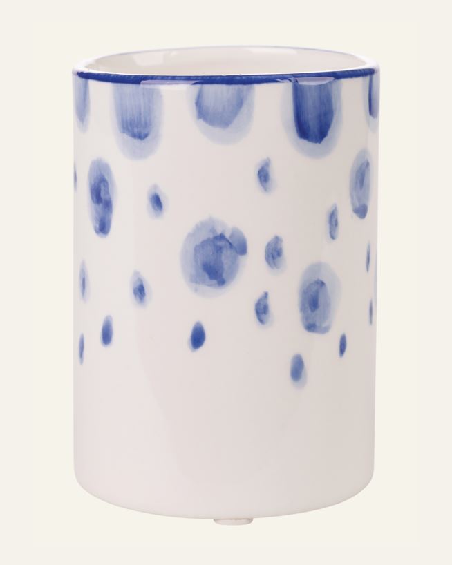 Tandborstmugg med blått mönster av kalksten. Muggen kan användas som tandborstmugg i badrummet eller till diskborsten i köket. Tandborstmuggen tillhör serien Dotty som är en badrumsserie med flera delar. Kombinera gärna flera delar ur samma serie för...