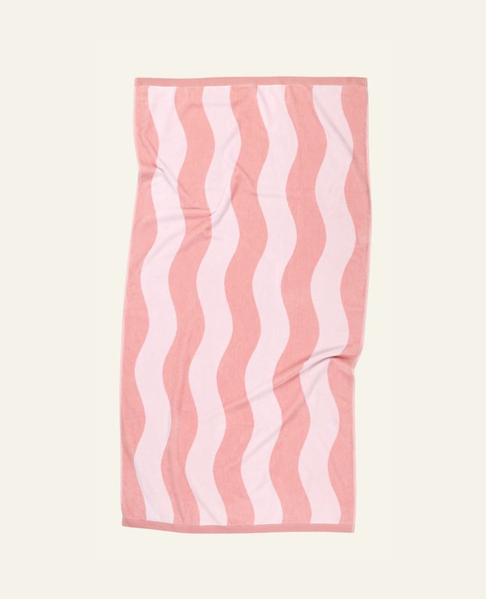 Wave strandhandduk i 100% bomull kombinerar stil och komfort med hög absorptionsförmåga. Perfekt för stranden, poolen och soliga dagar.