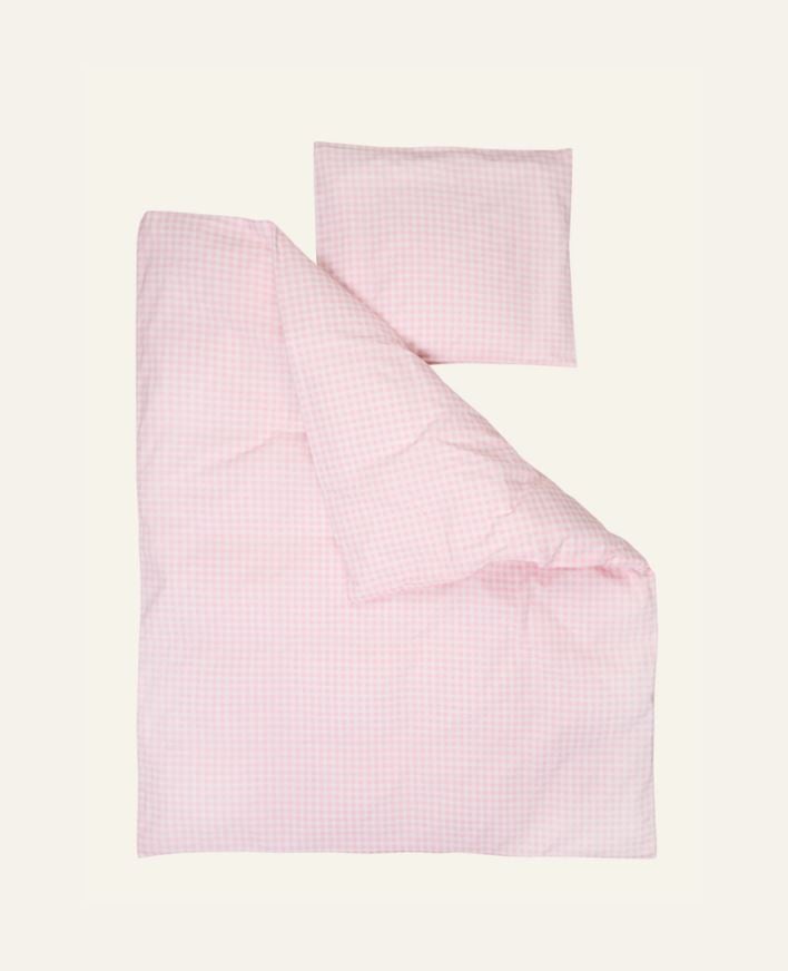 Påslakanset i 100% bomull med ett vackert rutmönster. Förpackningen innehåller ett örngott för babykudde (38x55 cm) och ett påslakan för babytäcke (100x130 cm) som stängs med dold dragkedja nedtill.