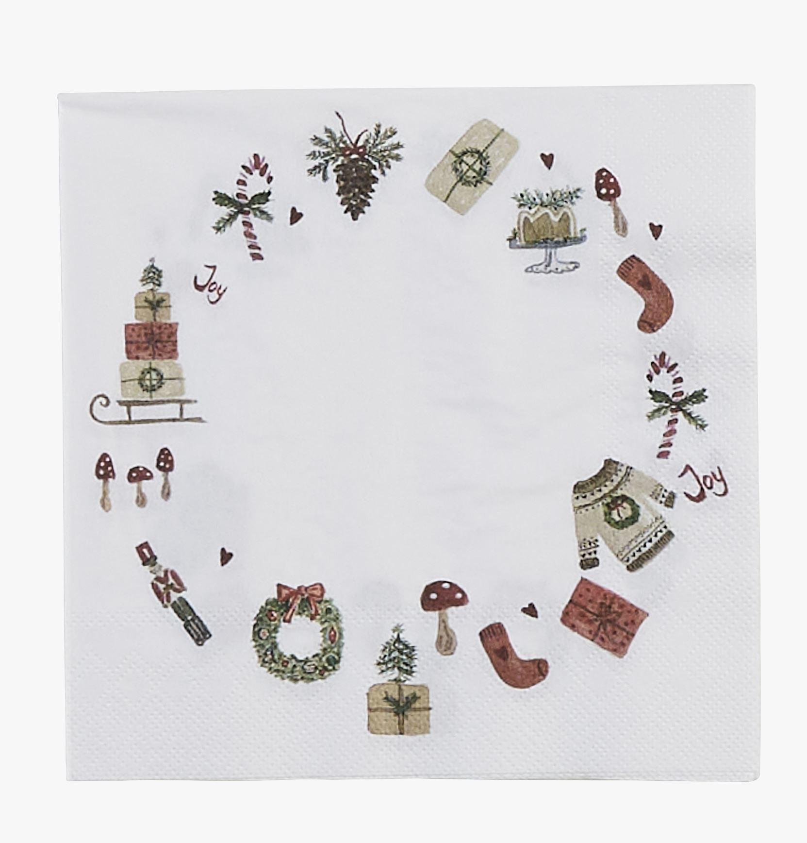 Papperservetter med kransmotiv i FSC- och svanenmärkt papper. Förpackningen innehåller 20 stycken 3-lags servetter.