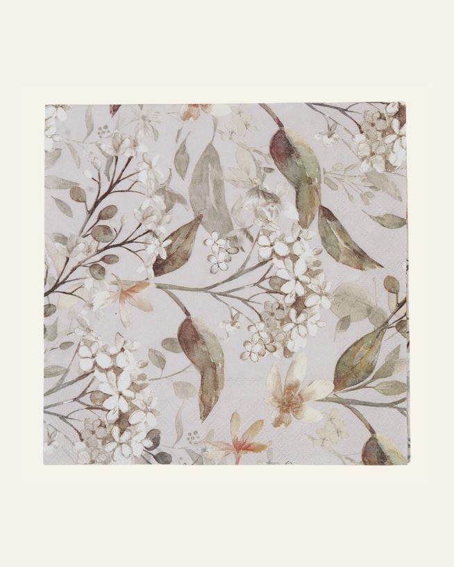 Papperservetter med tryckt mönster och växter och blommor. Kommer i 20-pack.