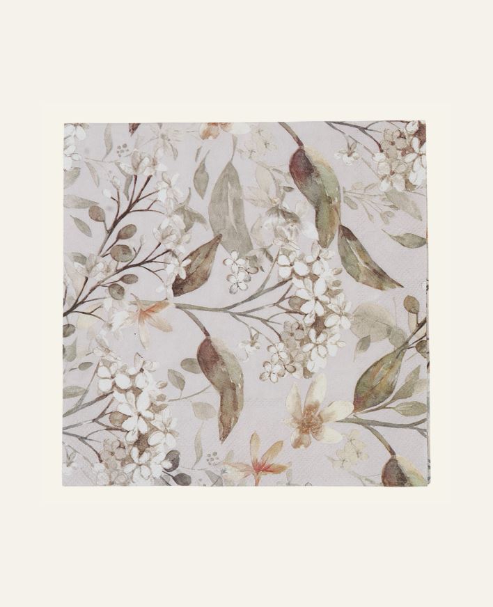 Papperservetter med tryckt mönster och växter och blommor. Kommer i 20-pack.