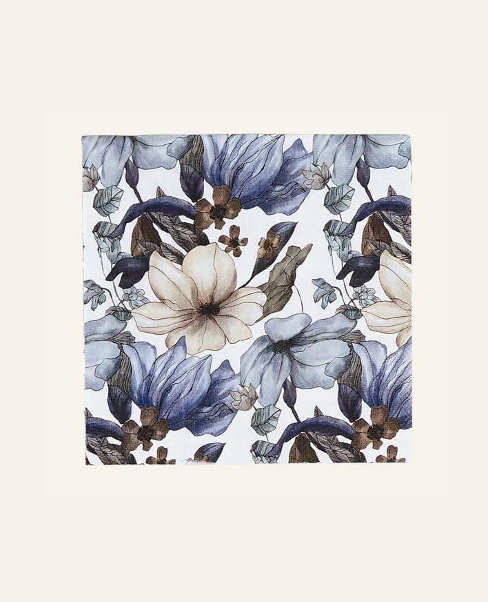 Blommiga pappersservetter i FSC-märkt papper. Förpackningen innehåller 20 st 3-lags servetter.