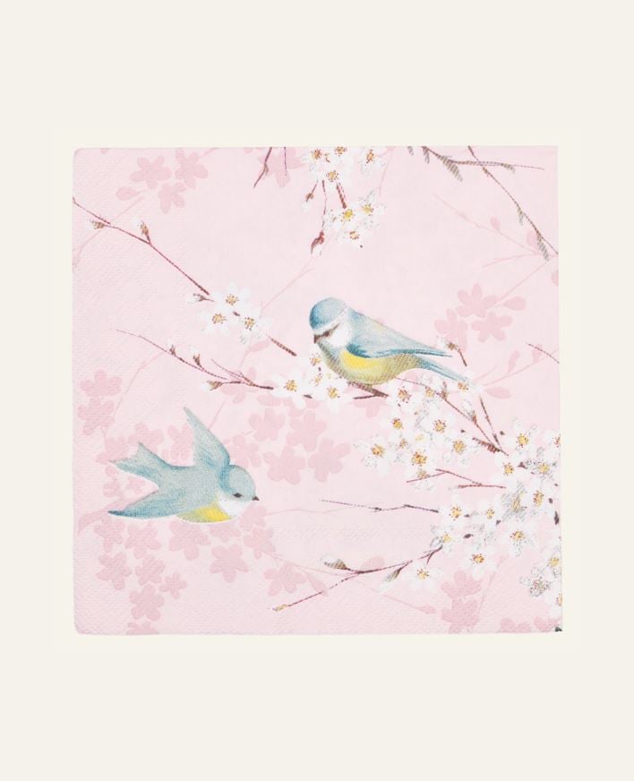 Pappersservett med motiv av fåglar och kvistar. En dekorativ servett som passar lika bra till dukningen vid vardag som till fest. Pappersservetter är en liten detalj som bidrar med en lyxig känsla till dukningen. Servetterna är FSC-märkta och förpack...
