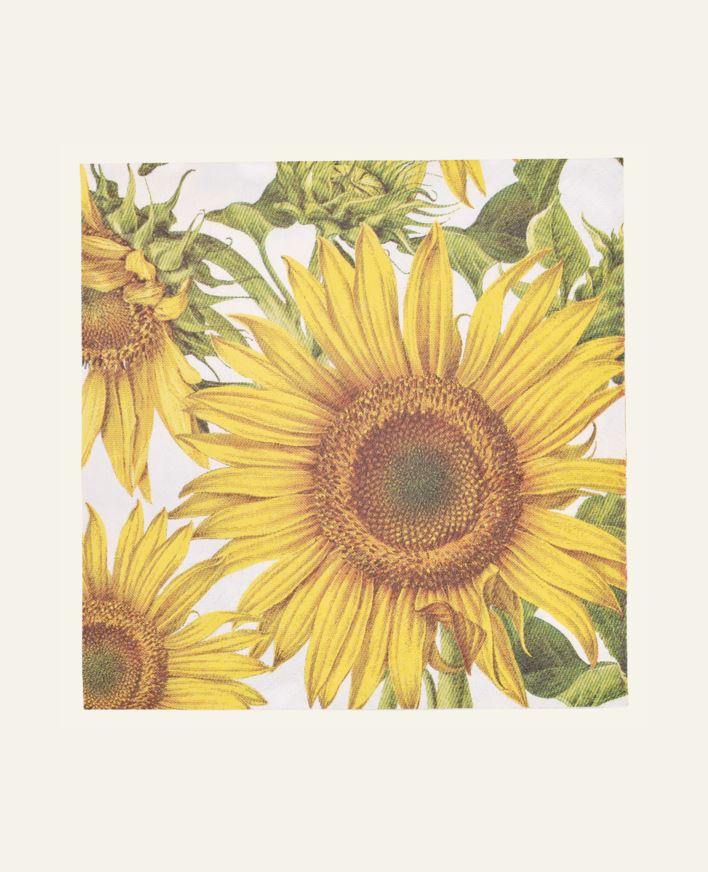 Pappersservetter med motiv av solrosor. Somriga servetter med vackra solrosor som sätt guldkant på vardagen eller festen. En liten detalj som bidrar med en lyxig känsla till dukningen. Kombinera gärna med en duk i matchande färg. Servetterna är FSC-m...