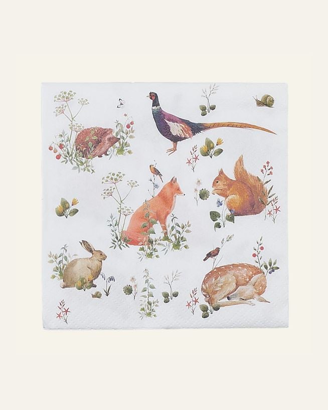 FSC- och Svanenmärkta pappersservetter med djurmotiv, förpackningen innehåller 20 stycken 3-lags servetter.