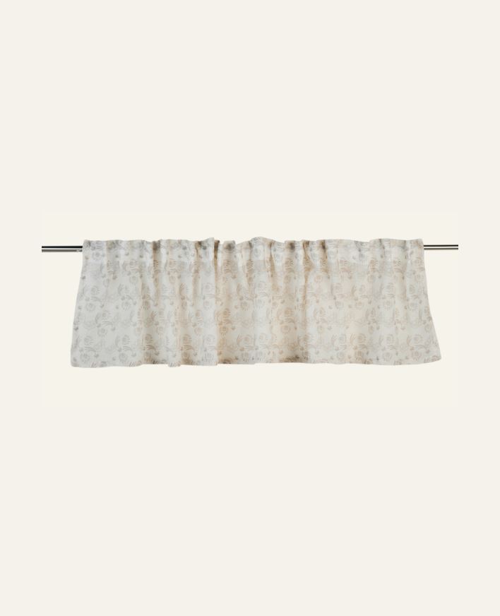 Lätt gardinkappa i polyester, med struktur som ger en känsla av lin med blommönster. Gardinkappan har påsytt multiband som ger många upphängningsmöjligheter. Välj mellan att använda de dolda hällorna på multibandet som ger jämna och fina veck eller t...