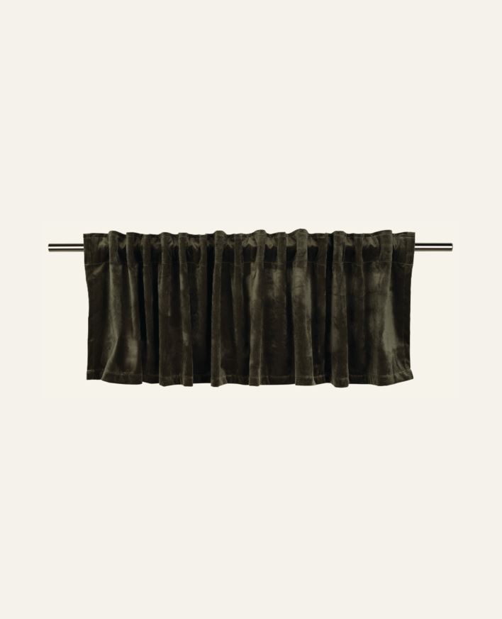 Gardinkappa av sammet med vacker lyster. En lite tjockare gardin som skärmar av solens direkta strålar och gör rummet mörkare. Gardinkappan är en multibandslängd, vilket innebär att den kan hängas upp på tre olika sätt: direkt i hällorna, genom den f...