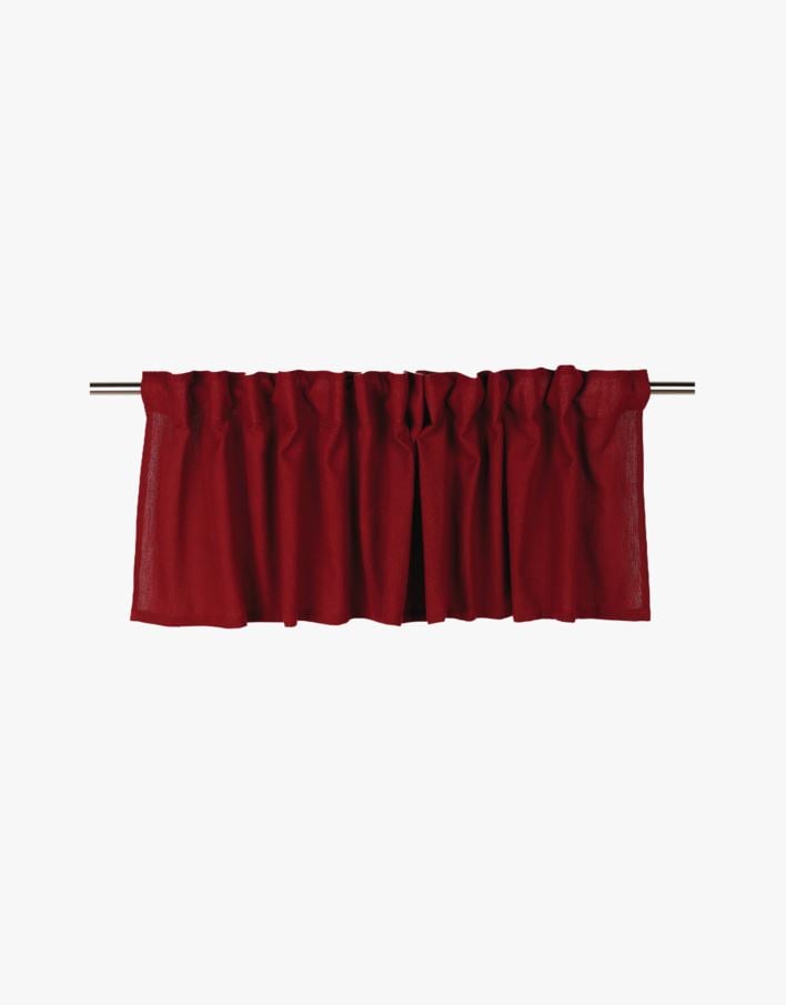Gardinkappa i grövre väv som ger fönstret en fin inramning.