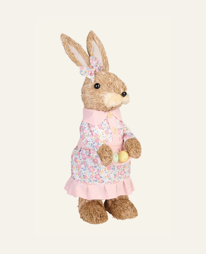 Gör påsken extra mysig med denna dekorativa påskakanin. Den söta kaninen bär en korg med påskägg och sprider vårstämning var den än placeras. Perfekt till entrén, på trappen eller som mittpunkt i påskdekorationen inomhus.