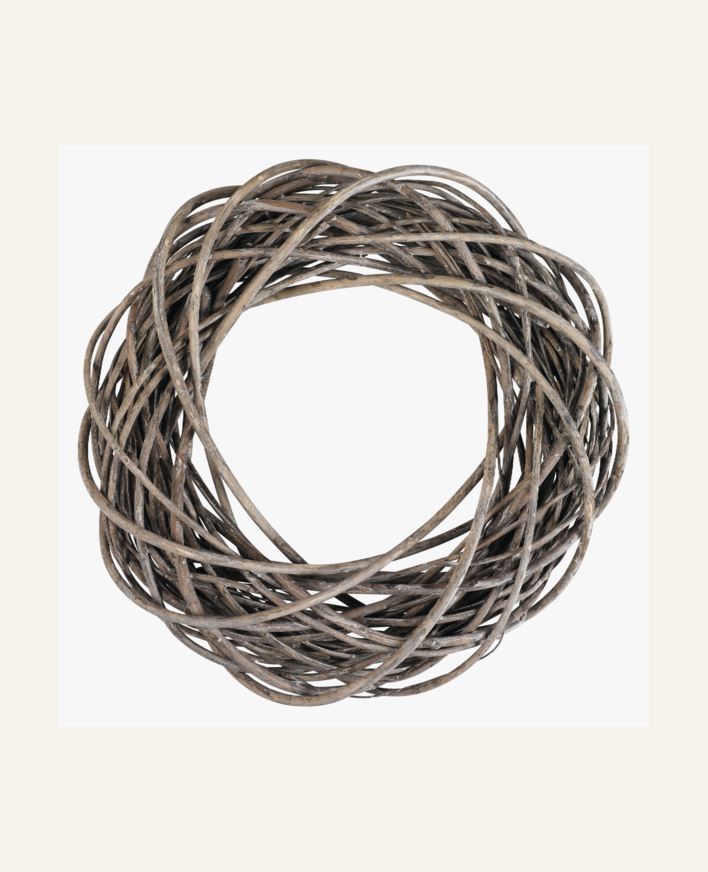 Vacker krans i pilträ. Kan användas som dörrkrans eller hängas på väggen. Kransen tål att hänga utomhus men bör då hänga under tak och undvika kontakt med vatten. 46 cm i diameter.