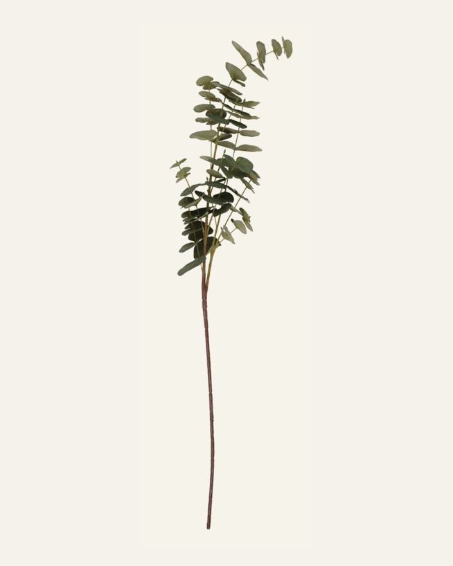 Elegant och konstgjord kvist med eukalyptusblad. En stilren inredningsdetalj som skapar en fräsch och naturlig känsla i rummet. Tillverkad av polyester och PE-plast för långvarig form och struktur.
