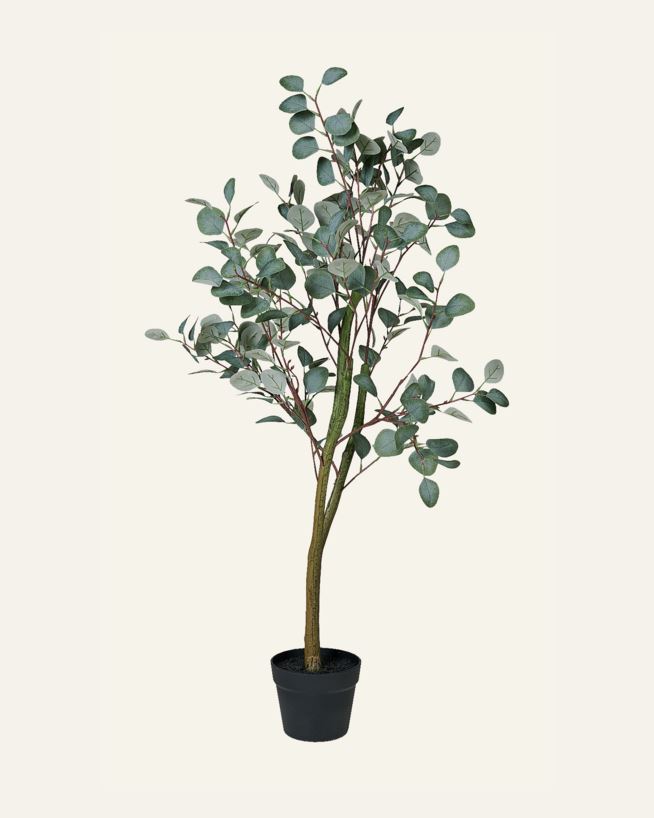 Ett konstgjort eukalyptusträd med naturtrogna blad som ger rummet en fräsch och harmonisk känsla. Passar i både hem och kontor och kräver ingen skötsel. En stilren detalj som bidrar till en lugn atmosfär året runt.