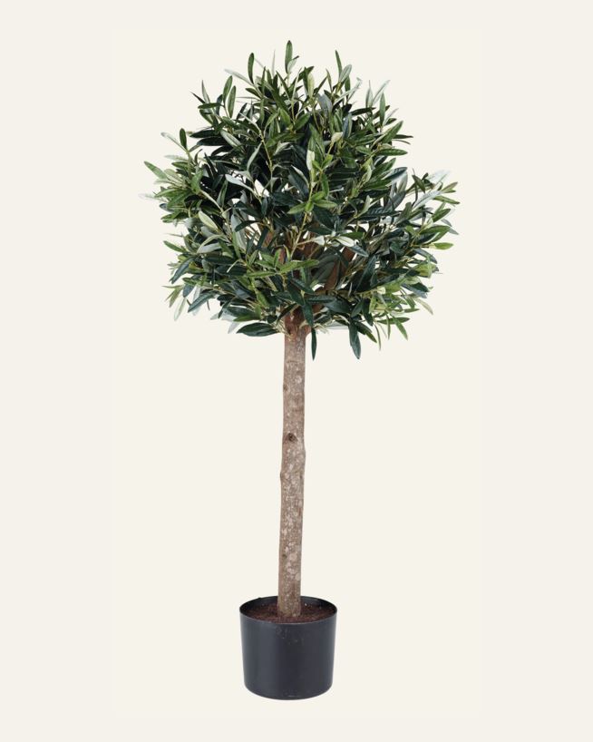 Ett stort konstgjort olivträd i svart kruka som ger en naturlig och harmonisk känsla i rummet. De detaljerade bladen och den realistiska stammen skapar en livfull atmosfär utan behov av skötsel. Passar utmärkt i hem eller kontor.