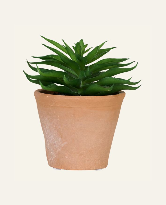 Charmig och kompakt konstgjord suckulent i dekorativ kruka.