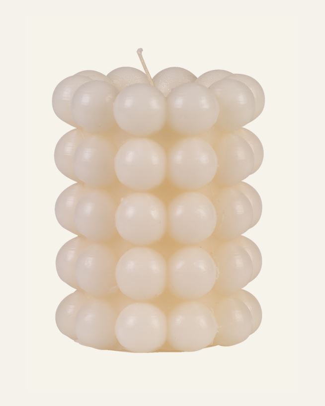 Ljus i 100% paraffin med bubblor i strukturen. Ljuset blir en snygg inredningsdetalj. Brinntid på ca 38 timmar.