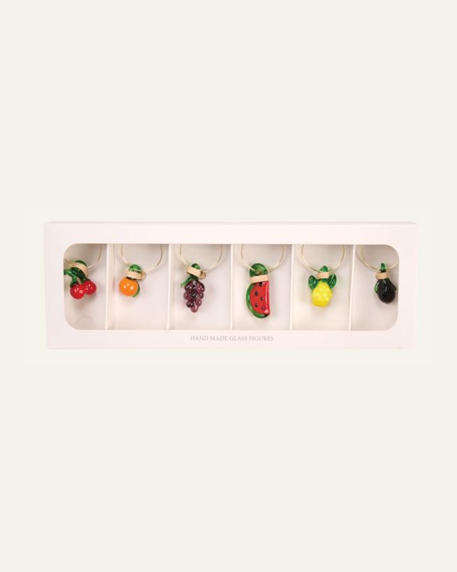 Paket med 6 st olika glasmarkörer. Fästs runt glasets fot. Fin som dekoration och gör det enklare att hålla reda på vilket glas som är vems.
