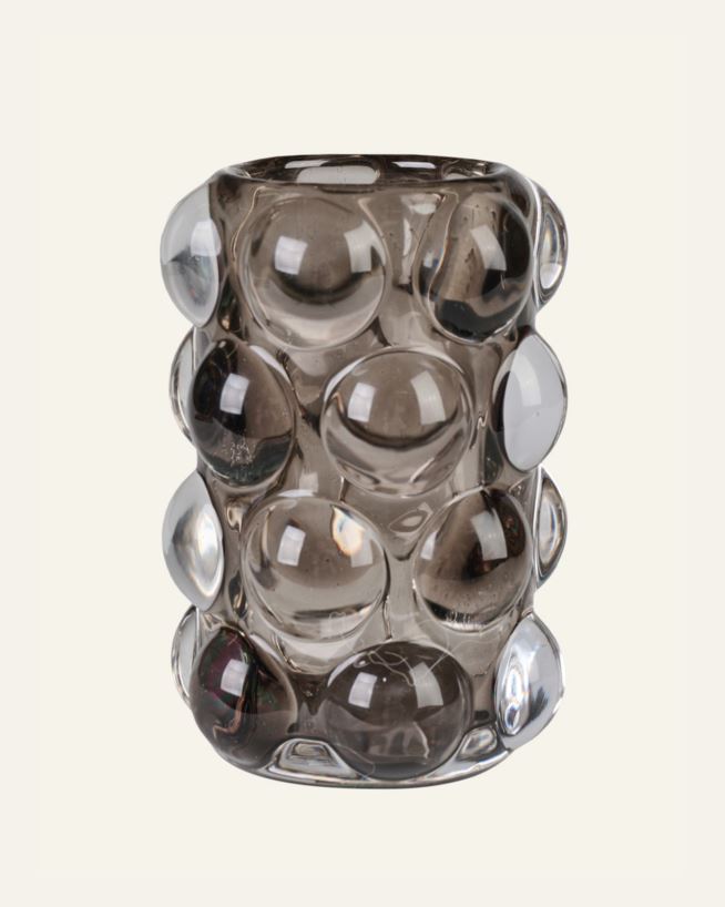 Dekorativ lykta av glas med spännande form i bubbligt mönster som sätter stämningen i rummet. Ljuslyktan har plats för ett värmeljus.