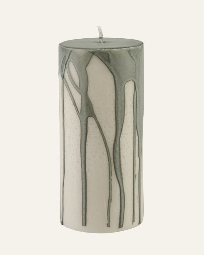 Blockljus med dekorativt mönster av stearin. Längden på ljuset är 15 cm.