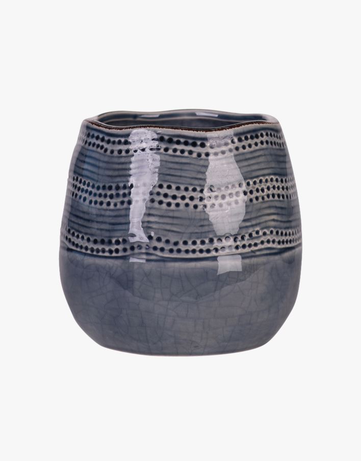 Liten kruka i keramik med vackert mönster. 13x13x12 cm.