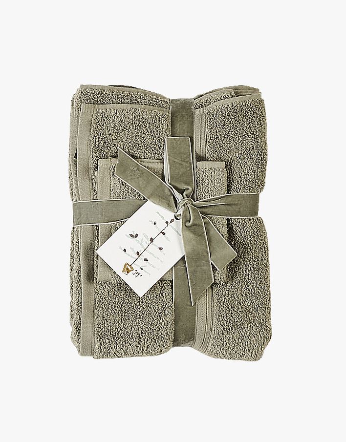 Perfekt julklapp! 1 handduk (70x140cm) och 1 tvättlapp (30x30 cm) i bra kvalitet. Inslaget med band och etikett. Finns i olivgrön, röd och mellanblå.