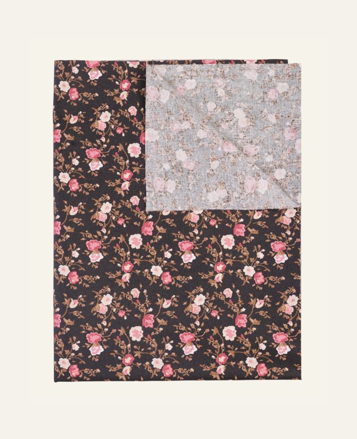 Avtorkningsbar duk med blommigt mönster. En spilltålig mönstrad duk i bomull. Tunn vattenavvisande beläggning (akrylatbeläggning, ej PVC) som gör duken lätt att torka ren. Ett trevligare alternativ till en klassisk vaxduk.