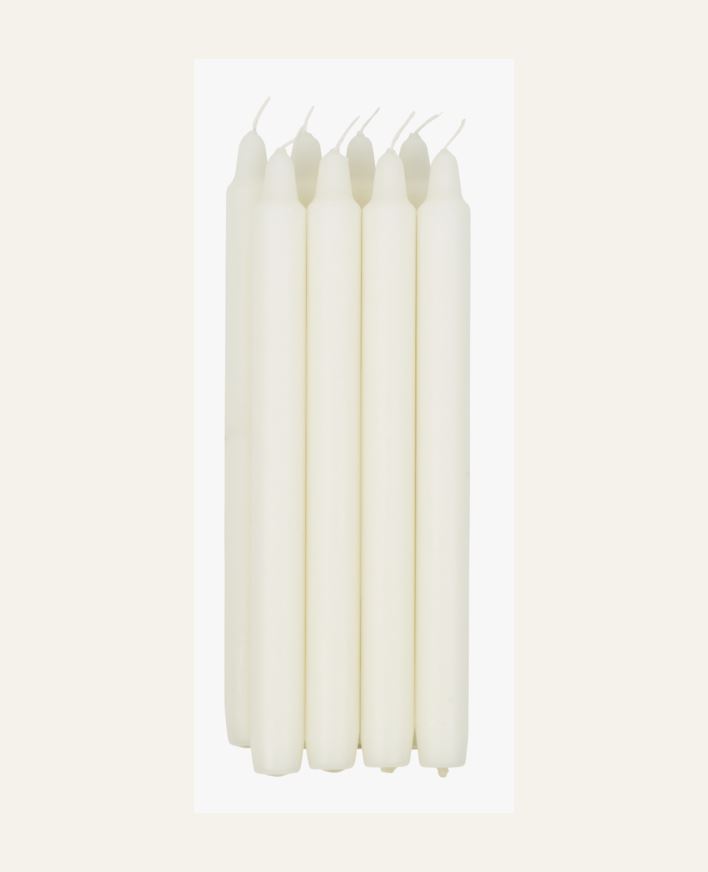 Kronljus av 100% paraffin. Ljusen är 25cm höga och har en brinntid på 9 timmar. Förpackningen innehåller 8st kronljus.