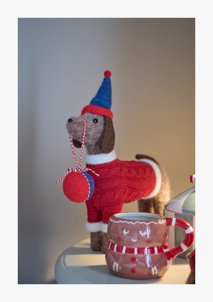 Playing dog dekoration multi/röd är en julprydnad som skapar en lekfull och stämningsfull atmosfär i hemmet. Med måtten 31x8x32 cm blir den en iögonfallande detalj i inredningen. Låt den inspirera till en varm och glad julstämning.