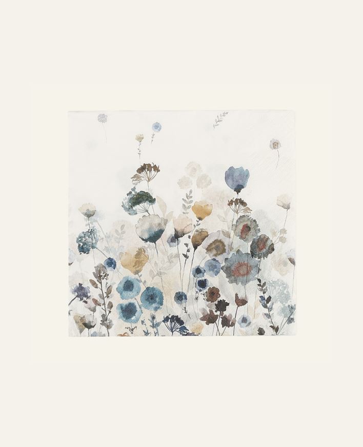 Papperservetter med blommor på i FSC- och svanenmärkt papper. Förpackningen innehåller 20 stycken 3-lags servetter.