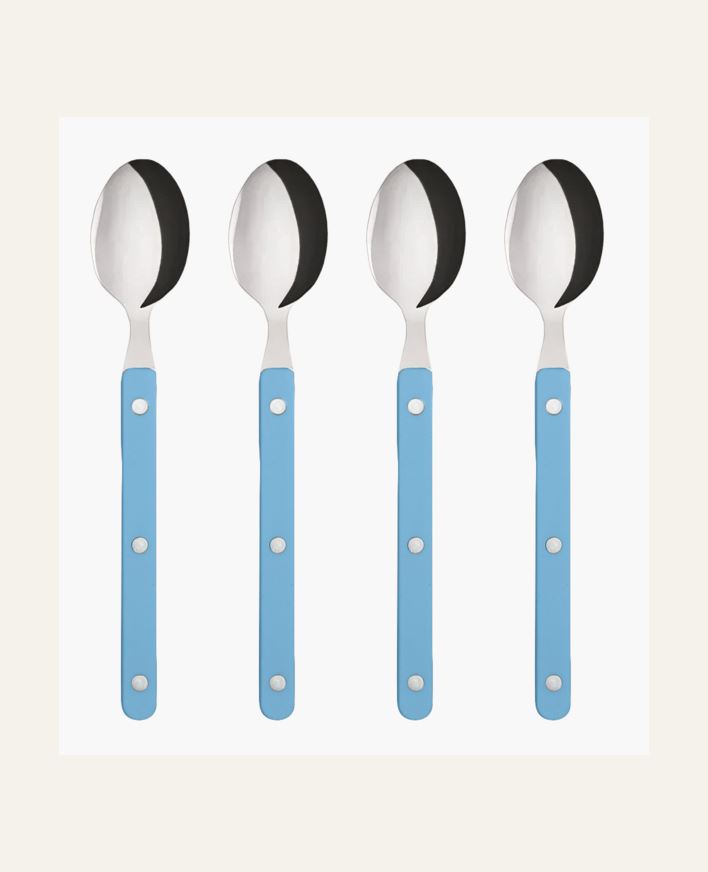 4 teskedar i rostfritt stål med bekväma plasthandtag.