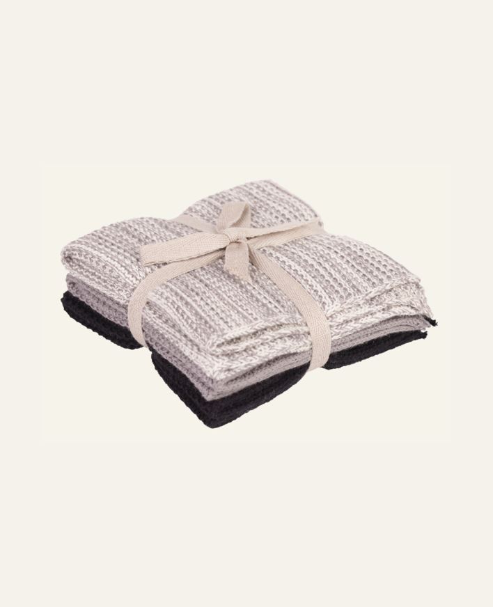 3-pack disktrasor i stickad bomull. Fina och praktiska. Trasorna går att tvätta i maskin och använda år efter år. Både ekonomsikt och miljövänligt.