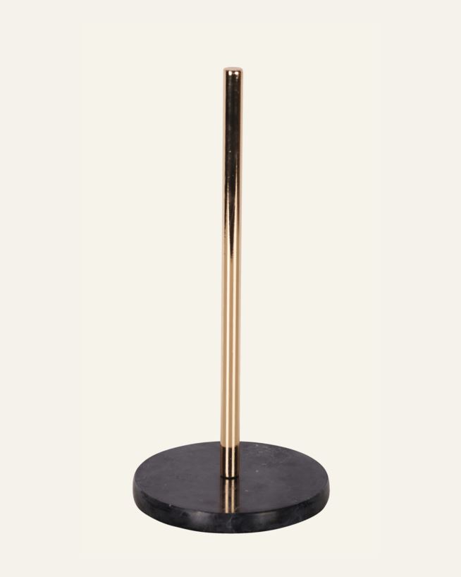 Dekorativ hållare i marmor och metall för hushållspapper.