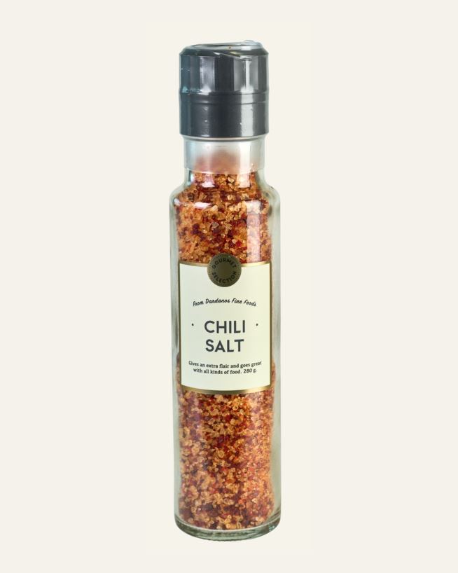 Kryddkvarn med chilisalt som kan användas som smaksättning till fisk, kött, kyckling och i dressing. Ger en unik smak i soppor och gryträtter. Ingredienser: Salt, chiliflakes, solrosolja.