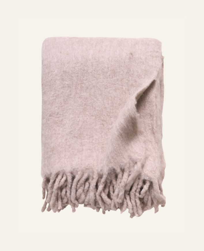 Asalie pläd är en tjock och luddig pläd som är mysig att svepa in sig i. Borstad ullmix kvalitet med stora fransar.
