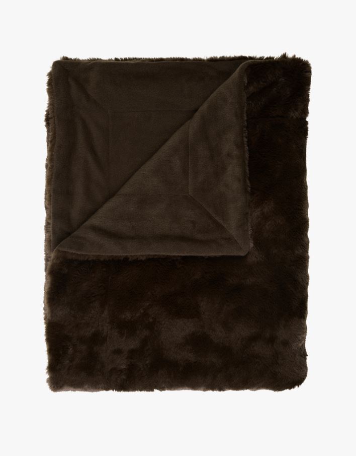 Pläd i pälsimitation mörkbrun - 130x170 cm