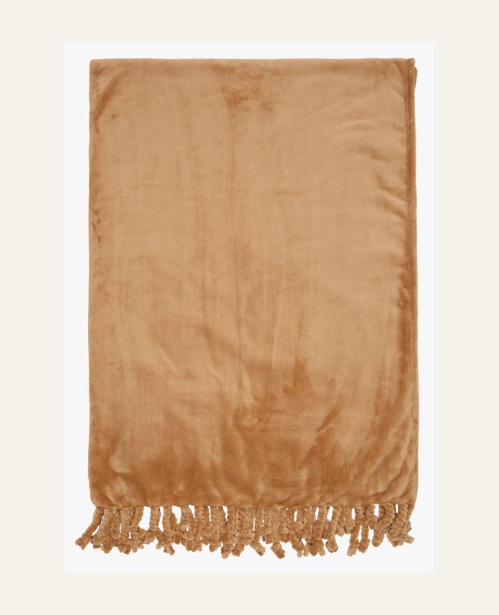 Mjuk enfärgad pläd i microfleece med tvinnade fransar. Pläden är skön att svepa in sig i, men blir även fin som detalj att ha liggandes i soffan eller sängen som ett överkast. Maskintvätt 30 grader.