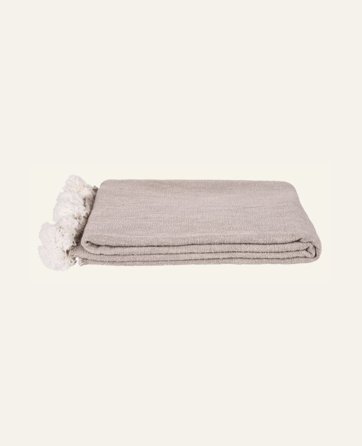 Härlig bomullpläd med pom poms på kortsidorna. Pläden blir en snygg inredningsdetalj på soffan eller sängen.