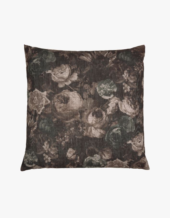 Underbar prydnadskudde med blommotiv i mörka och dämpade färger. Matcha med härliga produkter i samma serie.