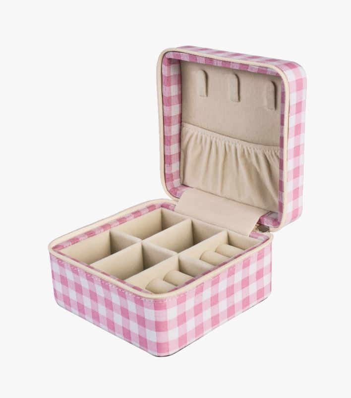 Vackert smyckeskrin för förvaring av dina favoritsmycken. Enkelt att ta med på resan tack vare dess fackindelning och dragkedja.