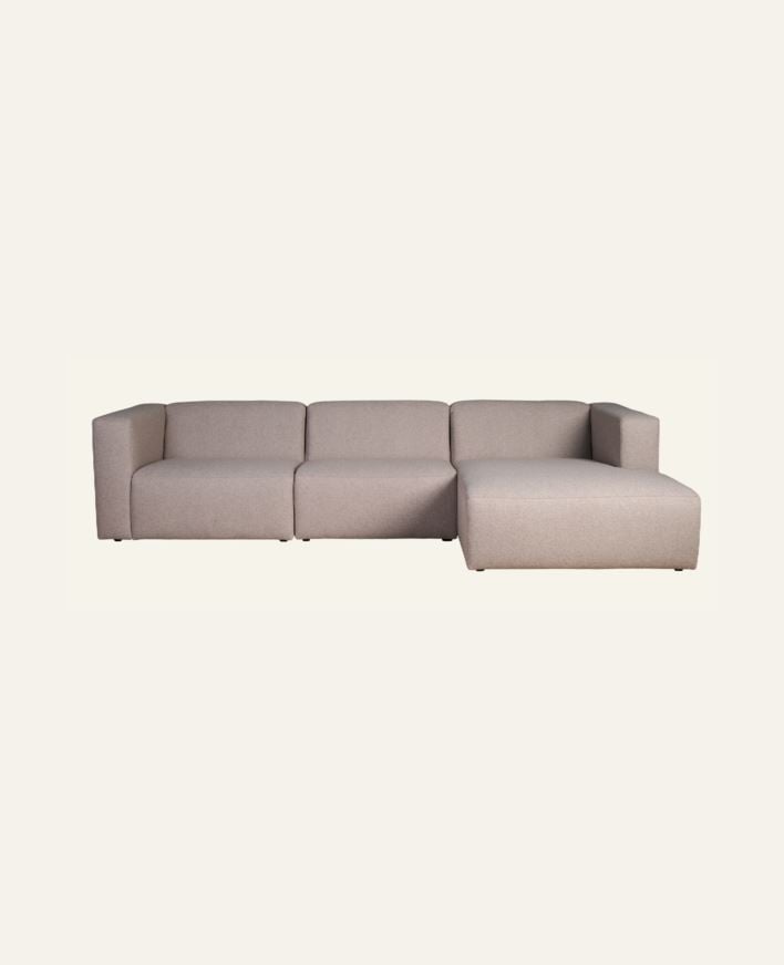 Trendig och bekväm modulsoffa. Placeringen av ände & schäslong beskrivs utifrån hur du ser soffan framifrån. Här visas schäslong till höger. Designen är robust men ändå mjuk och rund i formen, vilket gör den inbjudande. Modulsoffan är både stabil och...