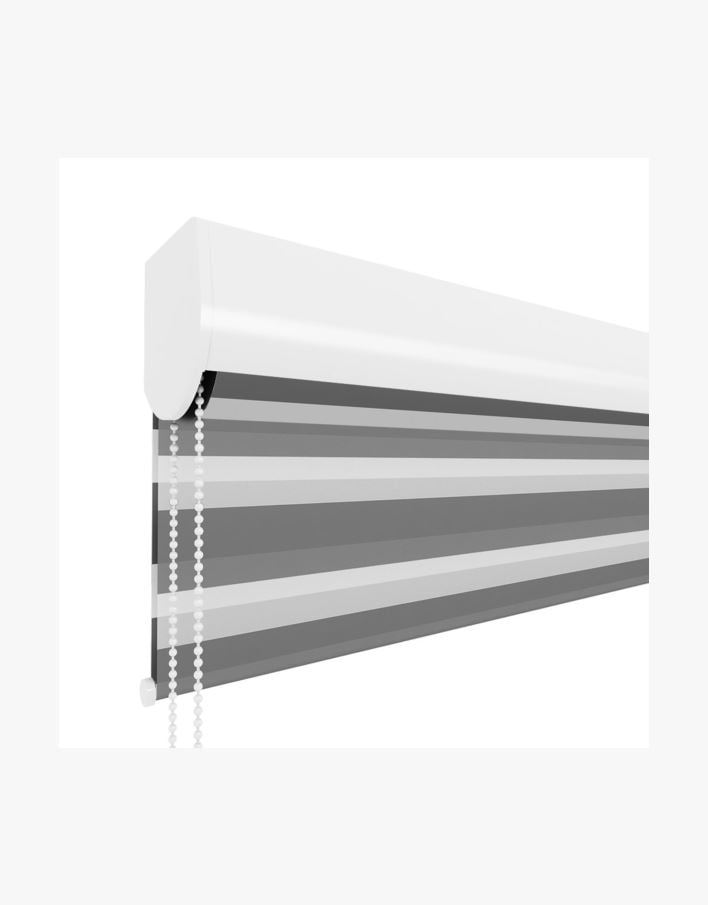 Duo rullgardin är en rullgardin med två lager tyger med tvärgående ränder. Ränderna har öppna och stängda fält. Det fina med systemet är att man kan öppna och stänga fälten genom att bara justera gardinen något i höjd. Med en duo rullgardin kan man enkelt justera insynen ungefär som med en persienn. Duo rullgardin levereras antingen med en täckande kassett som döljer rullgardinstyget eller med en monteringsprofil upptill. Båda systemen fästs enkelt med klämmor som skruvas fast i väggen eller i taket. Välj mellan metall eller plast dragkedja. Välj mellan färgerna vit, svart, antracit eller grå på kassetten eller monteringsprofilen. Det finns ett stort urval av färger på tygerna. Levereras med rund metall på nedre fältet. Läs mer om hur du mäter här!
