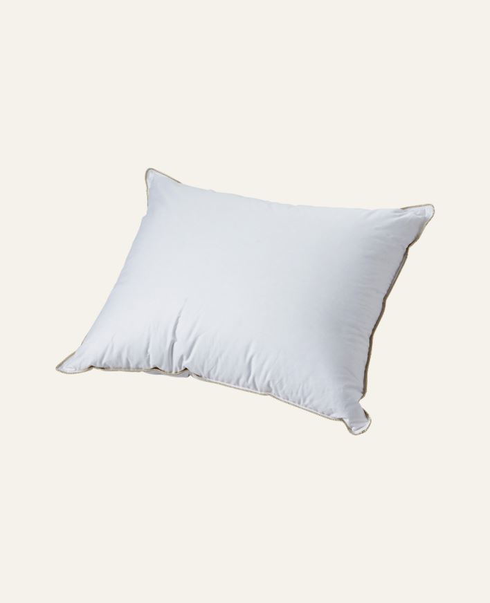 En medelhög dunkudde med yttertyg i bomull fylld med exklusivt gåsdun. Brukar du sova på rygg eller rör du mycket på dig i sömnen passar en medelhög kudde bra. Trådtäthet yttertyg 460. Maskintvätt 60 grader. Garanti 3 år.
