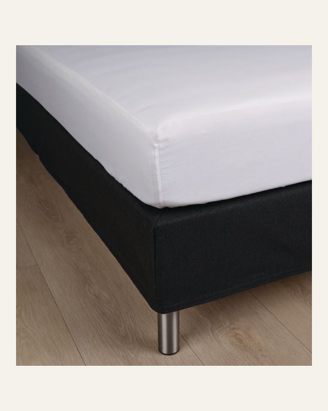 Underlakan i bomullssatin. Den speciella vävtekniken och den kammade bomullen ger tyget en slät yta och en sidenmatt lyster. Den mjuka och sköna känslan gör att det känns som att man sover i en lyxig hotellsäng. Trådtäthet 215. Maskintvätt 60 grader.