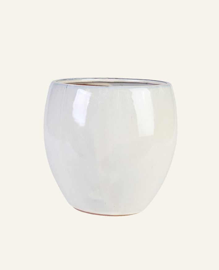 Glaserad blomkruka i stengods med ett dräneringshål i botten för att leda bort överflödigt vatten. Krukan levereras utan fat och kan användas utomhus då den tål både värme och frost. Vi rekommenderar dock att tömma krukan på vatten och jord innan fro...